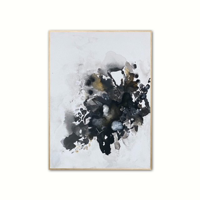 MIXED MEDIA ON CANVAS, FRAMED IN DEEP CHARCOAL