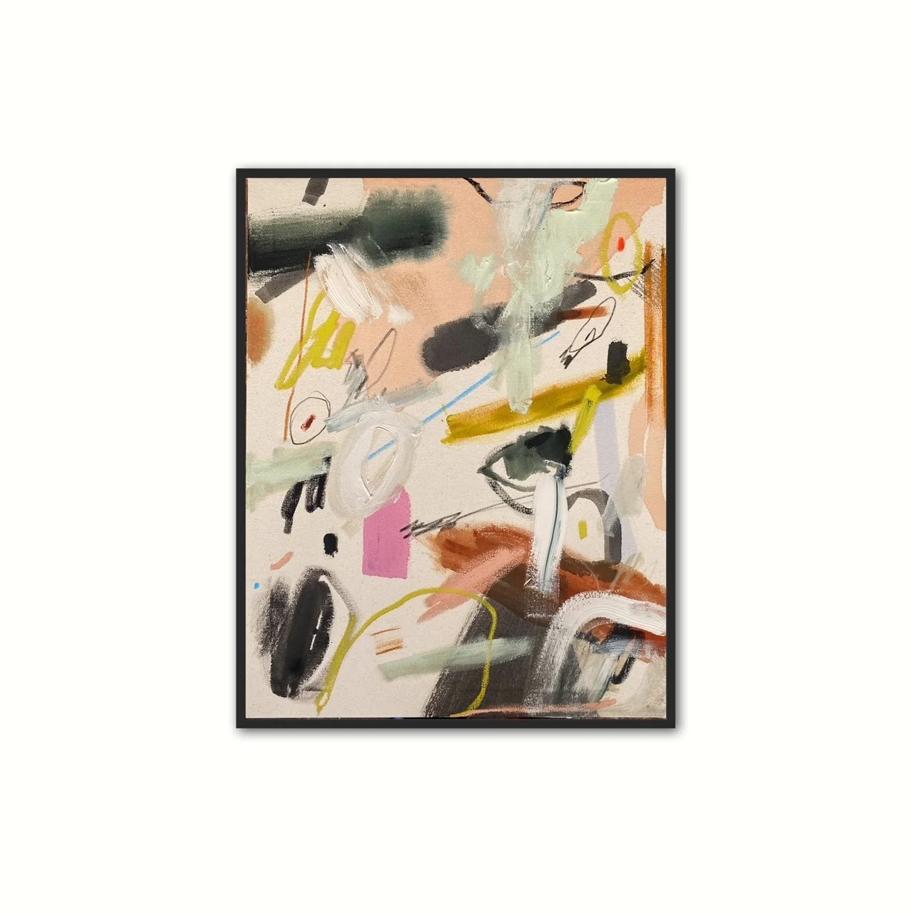 MIXED MEDIA ON CANVAS, FRAMED IN BLACK