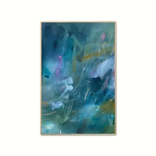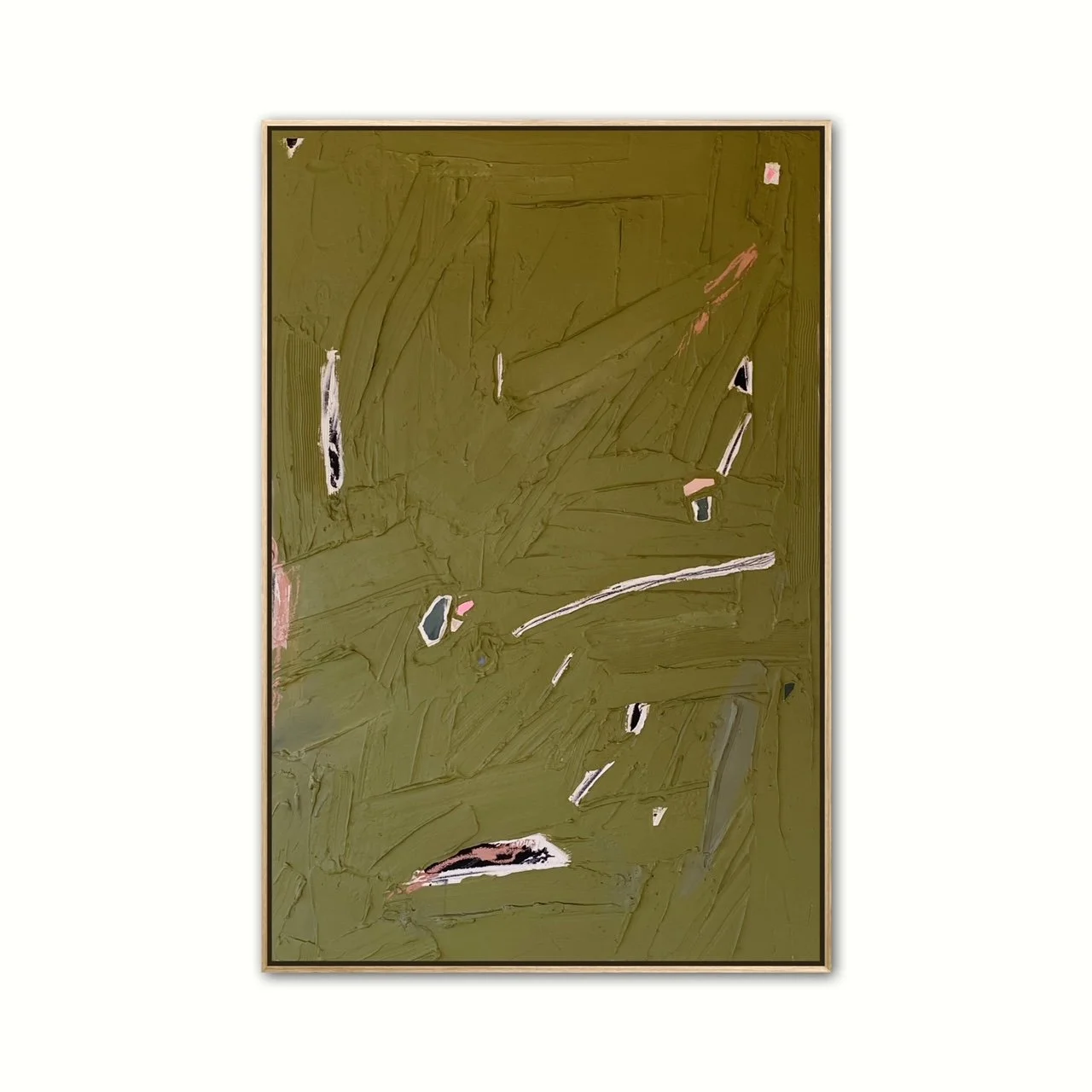 MIXED MEDIA ON CANVAS, FRAMED IN MAPLE