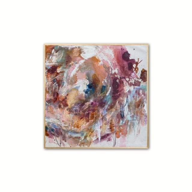 MIXED MEDIA ON CANVAS FRAMED IN MAPLE